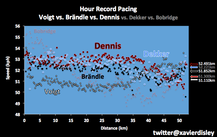 Boardman's pace after 30 kilometres before pulling off the track after 40